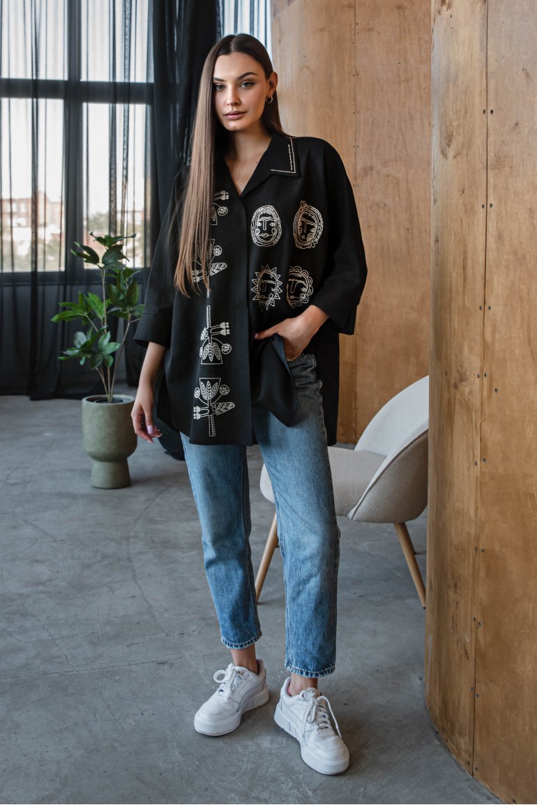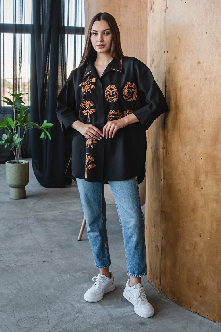 Стильна вишита сорочка оверсайз з етнічними мотивами вишивки ідеально підходить для створення стильних міських образів. Поєднайте її з джинсами, шортами чи спідницею - і виглядайте неперевершено щодня.